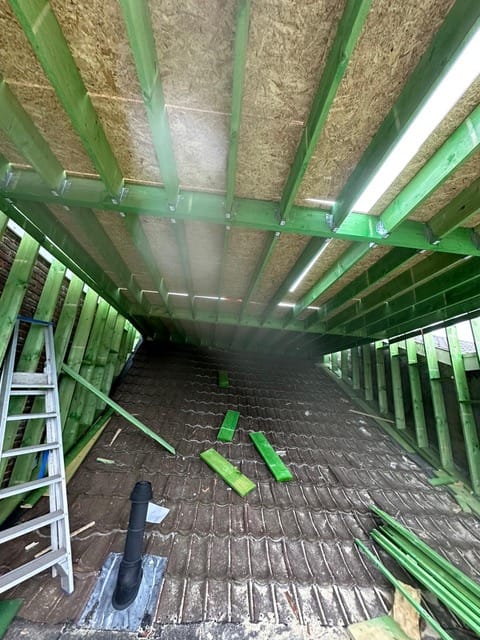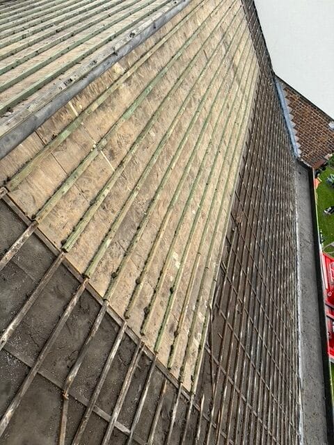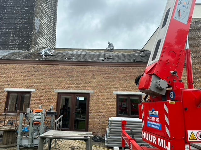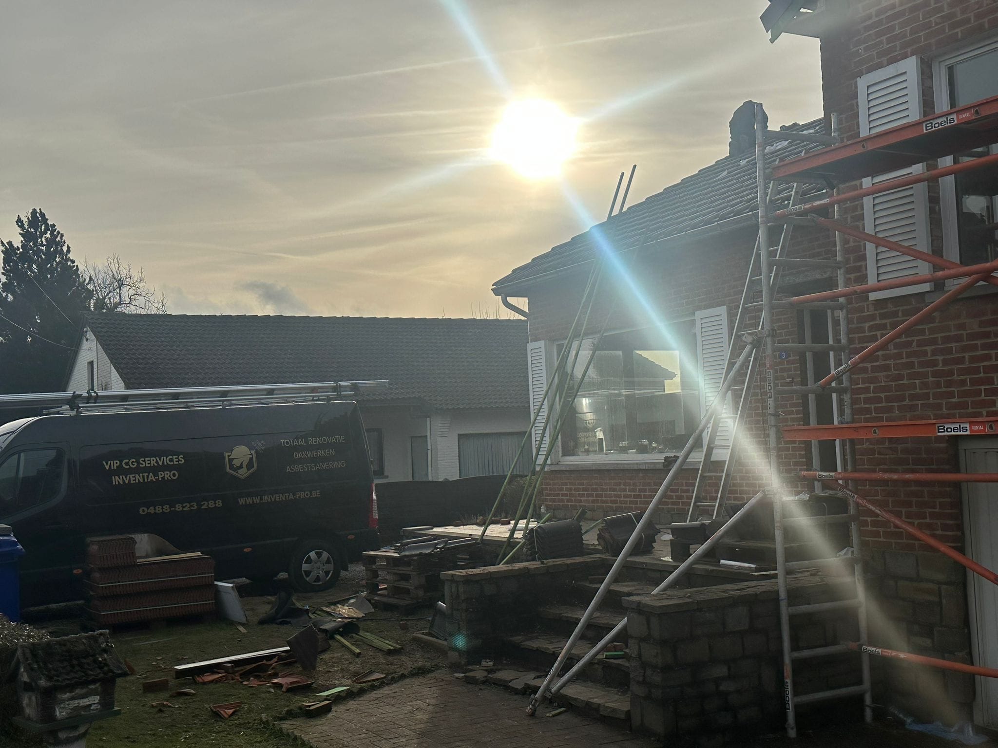 Hechtgebonden asbest verwijderen in eenvoudige handelingen: Hierbij gaat het om bijvoorbeeld golfplaten. Hieronder enkele foto’s van het asbest verwijderen uit golfplaten in Sint-Truiden, en Gevel leien in Gent: